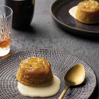 Turn out the puddings and top with the warmed syrup and serve with crème anglaise.
