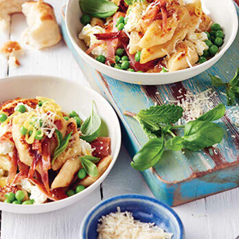 Sauce: Finely slice the prosciutto. Place a medium pan onto a high heat and fry the prosciutto for a few minutes until golden. Remove from the pan and set aside.