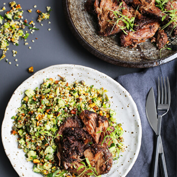 For a nice crust on your lamb, increase oven to 200°C Fanned Grilling function, place lamb, skin-side up and uncovered, on the second shelf for 25-30 minutes until the skin is dark and crispy. Rest the lamb for 20 minutes then shred, season well with salt and pepper, top with fresh parsley and serve.