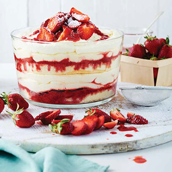 Thinly slice the remaining strawberries and layer on top of tiramisu. Before serving, dust with icing sugar.