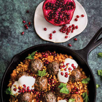 Dollop over yoghurt and sprinkle with pine nuts, pomegranate and extra parsley leaves.