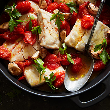 “This is a famous recipe we always cook at our villa in Puglia, Casa Olivetta, using local fish we buy at the weekend markets. It’s easy, flavorful and can be served with rosemary-and-salt-roasted potatoes, butter lettuce, avocado and dill salad with a mustard dressing.”