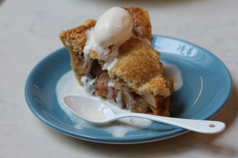 22. Remove the pie from the oven and stand for 5 minutes before serving warm with ice cream.