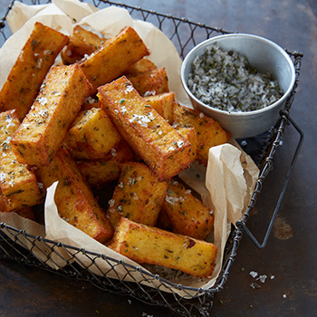 “Crispy and golden – these polenta chips are healthily cooked in the combi-steam oven. Who would have thought that such wonderful results could be achieved with steam?”