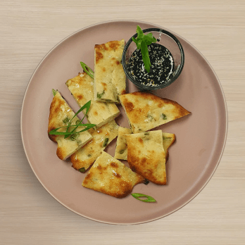 - In a small bowl, mix all dipping sauce ingredients and serve alongside the flatbread.
