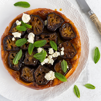 Cover the eggplants with pastry, tucking edges into the side of the frypan.