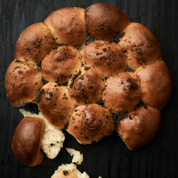 - Turn the dough onto a lightly greased bench and divide into 60 g portions. Roll into a ball and place in the trays 2.5 cm apart.