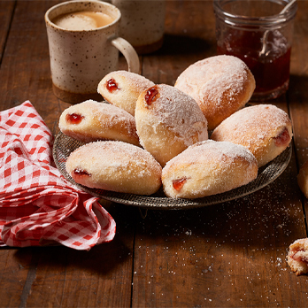 Once cool, heat the jam a little and put into the piping bag and inject the donut with the jam.