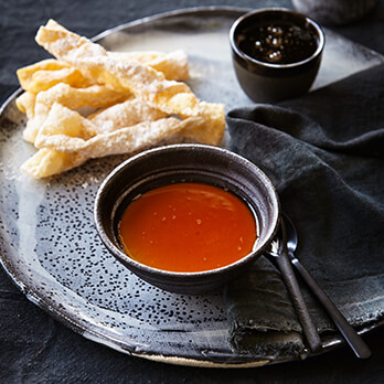 - Wait for the sugar and water to reduce spattering, then using a whisk, whisk the water into the caramel until combined and a smooth consistency is achieved.