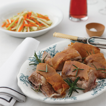 Serve suckling pig with sprigs of rosemary and pinzimonio.
