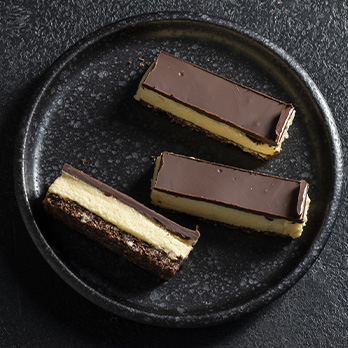 - Top layer: In a small saucepan over induction level 2, melt chocolate; remove from heat and stir in oil; mix well. Spread over the top of the custard layer, smoothing the surface with the back of a spoon. Refrigerate until chocolate is set. Cut into bars.