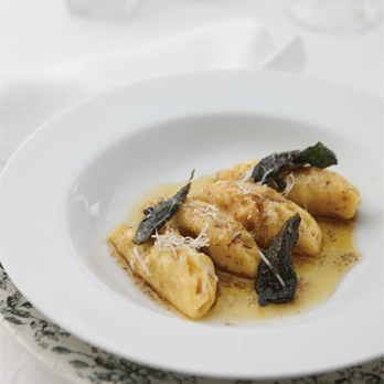 Put the butter and sage leaves together with little salt and pepper in a large pan and heat gently until melted.
