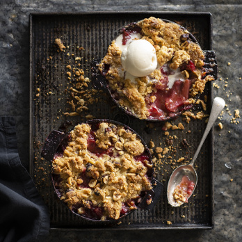 5. Sprinkle skillet contents with crumble and place in the oven. Cook for 30 minutes or until browned and bubbling.