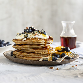 3. Melt 2 teaspoons of butter in a large non-stick frying pan over medium heat. Cooking in batches, use a ladle or ¼ cup to measure each pancake and gently pour into pan. Cook pancakes for 1 minute. Once bubbles have formed on the surface, flip and cook for a further minute or until golden brown and cooked through. Repeat with the remaining batter.