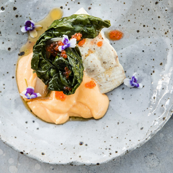 To serve, place the fish on the base of a bowl, add the creamed egg, followed by the silverbeet.
