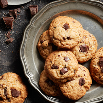 - Place the biscuits on enamel trays lined with baking paper. Press the centre of each biscuit gently and top each biscuit with remaining chocolate. Sprinkle the biscuits with a pinch of black salt flakes if desired. Bake the biscuits for 14 to 16 minutes, or until golden brown.