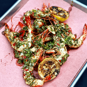 - Placing the prawn's shell side down, meat side up on your grill, brush well with the chimichurri mix