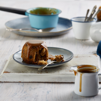 Turn puddings out on to individual serving plates and drizzle over the caramel sauce. Serve with whipped cream or ice-cream.