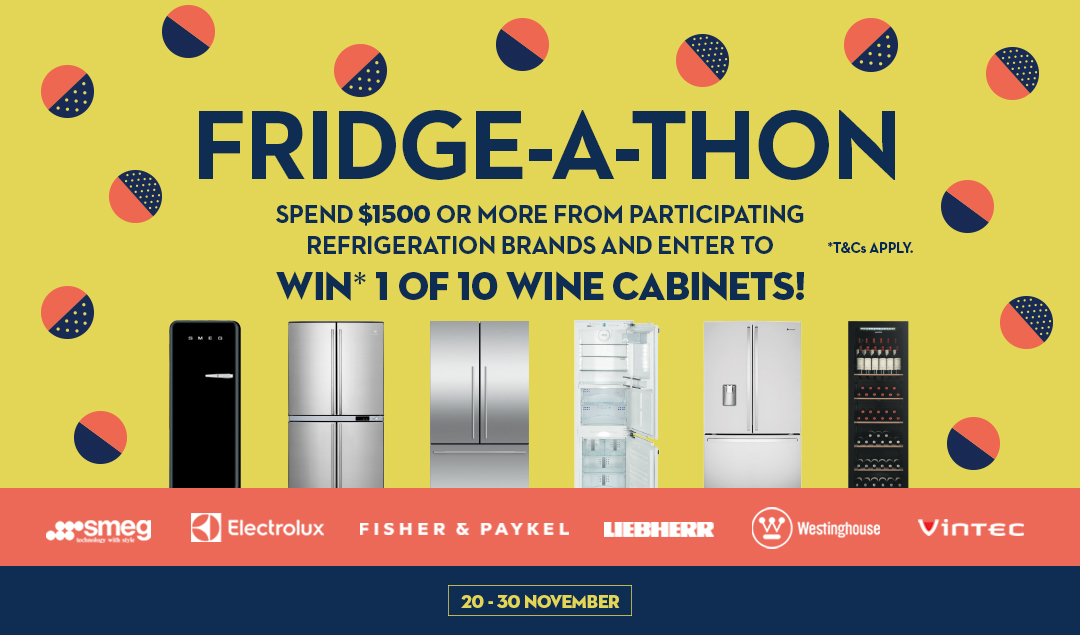 A festival of refrigeration running from November 20th-30th, the Fridge-A-Thon is your chance to save on an incredible selection of premium brands. It features everything from magnificent French Door Fridges and stunning examples of the latest European design to Cabinets that provide the optimum conditions for the long-term storage conditions of your wine. With such a range of styles and configurations on offer - boasting the latest intelligent cooling technology and superb design that will bring elegance and convenience to your home - this is an unmissable opportunity. And, what's more, if you spend $1500 or more from select refrigeration brands you will be eligible to enter to WIN* 1 of 10 Wine Cabinets from Fisher & Paykel and Vintec!